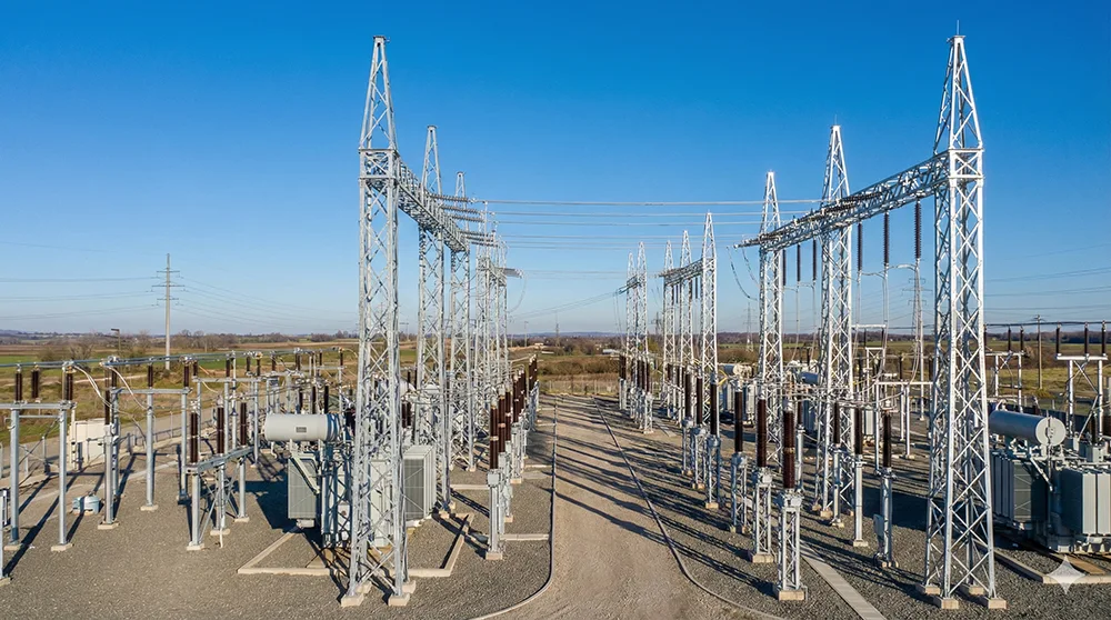 Příchozí/odchozí brány: Konstrukce typu H-Beam nebo Lattice pro zakončení vysokonapěťového vedení.