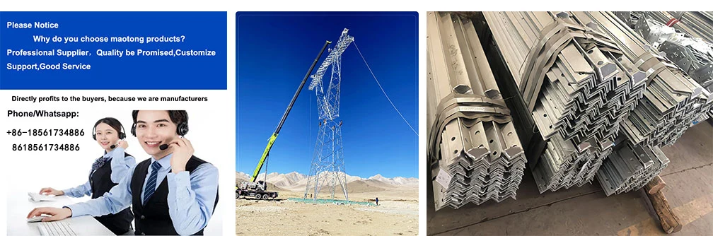 Mao Tong je profesionální výrobci úhlových elektrických věžových přenosových věží Q235 SS400, mají dlouholeté zkušenosti a výhody všech druhů věžových produktů jsou doma i v zahraničí, těší se dobré pověsti, za účelem kvality, servisu za tímto účelem, šest hlavních výhod rozhoduje o tom, že si vyberete naši společnost, spolupráce, zaměření: kladení pera na papír a různé produkty přísný výrobní proces, nabídky: Výrobci preferují kvalitu produktu, bez kontroly výroba, údržba jako jedna ze služeb, továrna: výrobní základna ocelových konstrukcí, tým: zákaznický servis předprodejní a poprodejní konzultace, služby údržby.